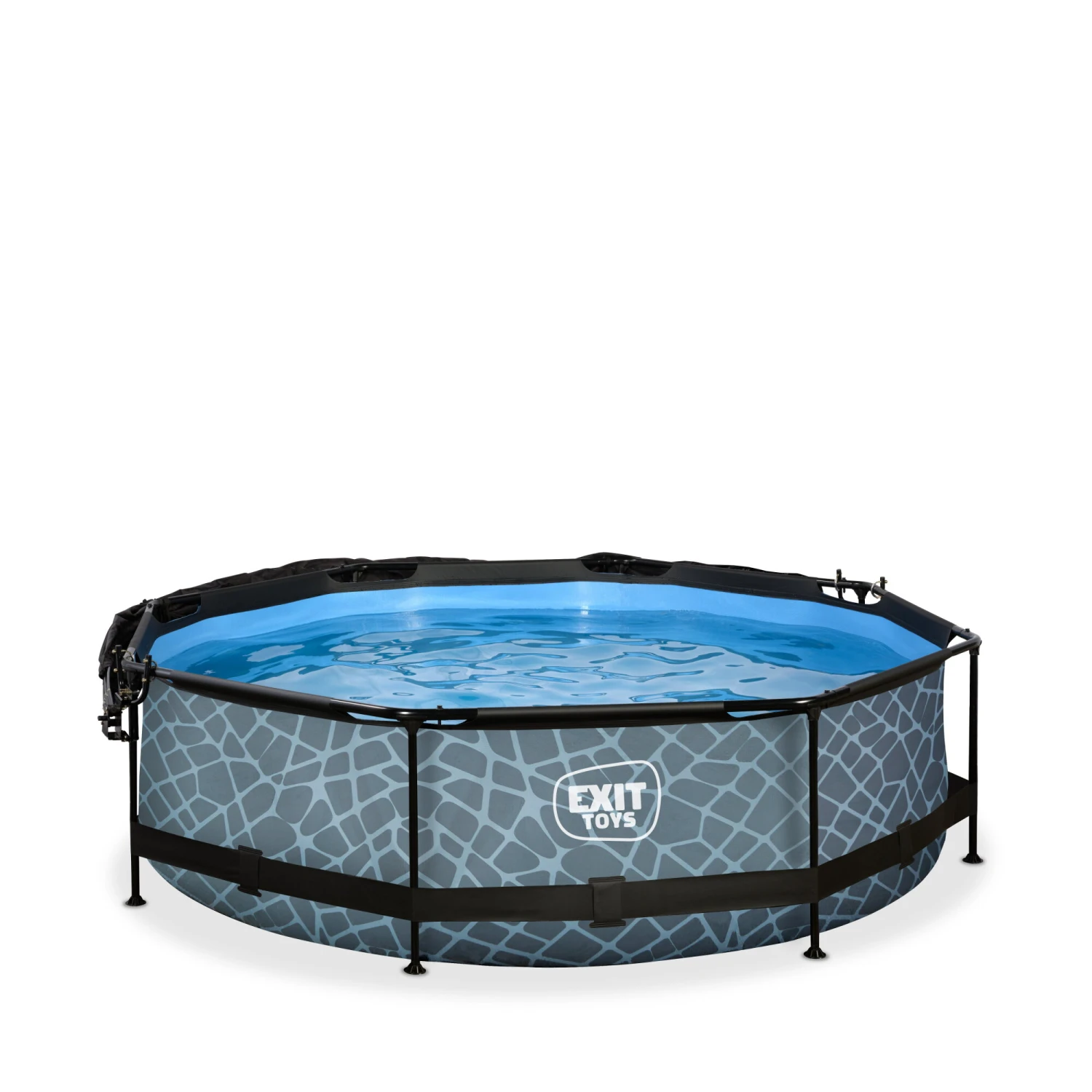 Het EXIT Stone zwembad ø300x76cm is een rond grijskleurig frame zwembad. Het zwembad is standaard voorzien van een filterpomp en schaduwdoek, die je op zomerdagen beschermt tegen de zon. Ben je op zoek naar een leuk en tegelijkertijd uniek en hoogwaardig frame zwembad in je tuin? Steel de show met de ronde zwembaden van EXIT Toys!