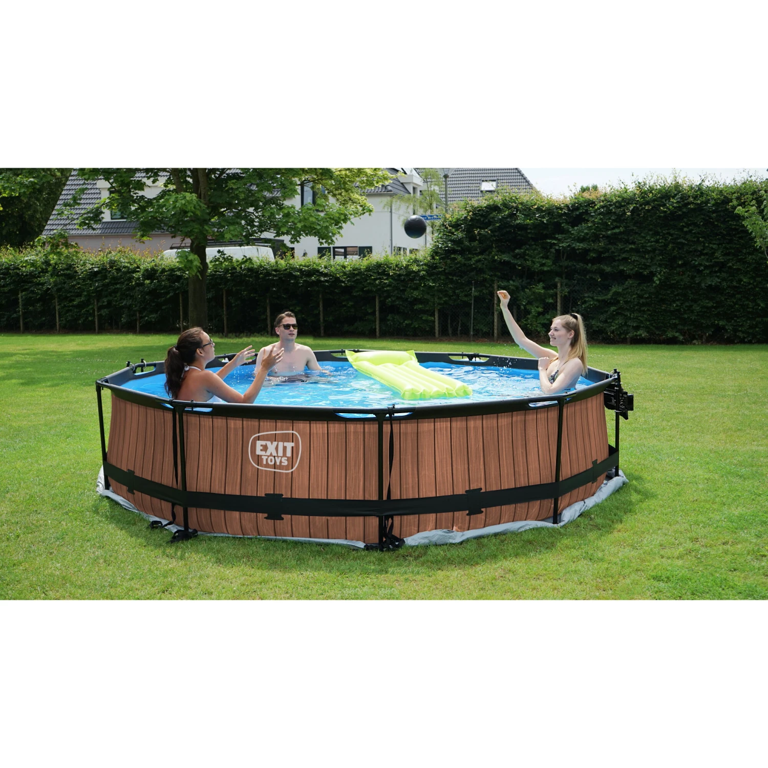 Het stoere steenpatroon en zwarte frame geven het Stone zwembad een unieke uitstraling en dankzij de natuurlijke look integreert het zwembad volledig in je tuin. De binnenzijde van het zwembad is blauw, zodat je het frisse zwembad gevoel houdt. De ronde vorm van het zwembad creëert een gezellige sfeer en zorgt ervoor dat je eenvoudig met meerdere personen plezier kunt beleven in je zwembad. Kies voor de zwembaden van EXIT Toys, een echte musthave voor in je tuin tijdens de zomer!